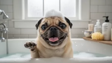 パグの体臭にお悩みの方必見!においの原因となる皮脂やシワの汚れを防ぐ対策を解説。適切な温度と頻度で行う低刺激シャンプーの洗い方や手順、予洗いからドライヤーでの乾燥まで。犬のバリア機能を守るお風呂習慣で今すぐ解決!